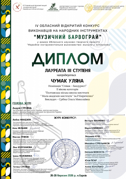 🏆 Чумак Уляна — ІІІ ступеня