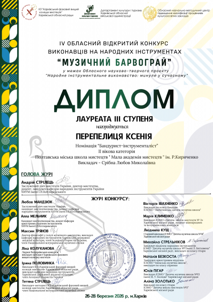 🏆 Перепелиця Ксенія — ІІІ ступеня