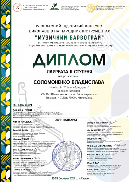 🏆 Соломоненко Владислава — ІІ ступеня