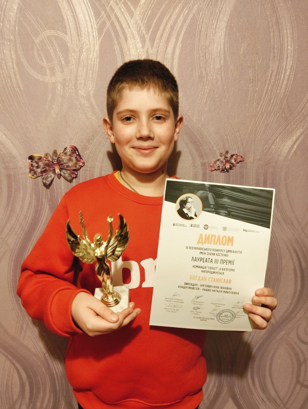 з успішним виступом та перемогою у ІІІ Всеукраїнському конкурсі цимбалістів імені Олени Костенко!